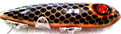 エバーグリーン製作のポッパーって( ^∇^)σ コレです。 クチのカタチからして、チャガー感が出てますね('-'*) これはタイプ2のほうでして、タイプ1はもっとクチが キュンキュンと鋭角+ストレートなカットです。 見にくいですけどラインアイが横向きな辺り、 既存のポッパーとは違うんだよ、との主張ありあり。 「動かしてクダサイ! 」 了解ッ(*´∇`)ノ と言いたいところですが、 冬のロングステイで使っちゃいましたm(_ _)m もう手元にないんですよね~( ̄‥ ̄) 店頭の買取でも見かけなく なりましたから、ずいぶん数は減っちゃったかもしれません。 こういうボディボリュームの3フッカー、 是非作ってください。 最近の釣りでは フレッドアーボガストの細長い3フッカー+スイッシャー を代用してますけど、やはりしっかりした制動は ポッパー口のほうが効果ありますから、 カンペキな代用品とは言いがたいんです(-_- ) ハイ。 |