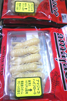 追加で入荷したアマジャコの ハイフロート素材モノ。 リアルなひと口サイズ☆ ソフトシェルグローという 夜光カラーで、まんまボケです。 ご購入のお客様が 釣り場へ直行( ^∇^)σ 結果は・・・ どどーんっ (≧≦) どかぁーんッ m(_ _)m オソレイリマシタ☆ このリップに水が 当たって よく動きます。 |