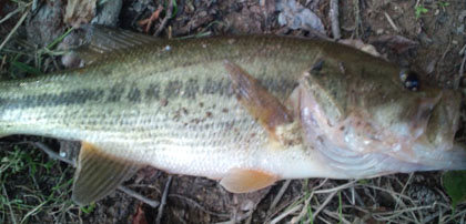 減水1メートルの池では