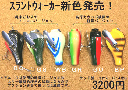 水面直下でバスを誘うコンセプト、ソルト系カラーリングにも注目。 羽根モノの新色ズラリ、浮力差で使い分けてください。 どちらも今月末発売の予定、予約・お問い合わせは メールにてお願いいたします。 |
