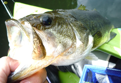 エモーションカヤックを積んでピューーーッと南へ。 今日の池はこんなとこです。ウイードびっしり、白いのは花。 その上に水が30センチほど乗っかってる感じ。 そのまま狙わず、ウイードのキレ目にルアーを通します。 が変わるからです。 え、ムズカシイ? 釣りはカンタンじゃないでしょ。 ( ^∇^)σサカナの活性の 質が変わるエリアですね。 お!おおおおおおおーっ"ヽ(´▽`)ノ" うりゃ来たッヽ(`Д´)ノ なかなか筋肉質です。 もいっちょどうぞ( ^∇^)σ 食わせることが できたら、次は ジャークベイトで!と 用意してたんですけど タイムアップ。 うーん、カヤックの機動性に ずいぶん助けられました。 近寄れるし、静かに遠のくこともできる(=´∇`=) バスが泳いで付いて来ますからね~~ライムは正解だったなぁ。 |
