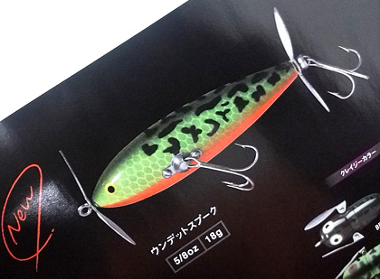 新しいカラーを含め、全4色。 まずはこちら(=゚ω゚)ノおおっ、ブルーが映えるッ ブルーヘッド。ボディがイエローなのもイカスー('-'*) 次は定番レッドヘッド。 パロットも外せませんねー そして最後は、スーパーグロー。 全長80㍉+3/4オンス、 税込み7665円(グローのみ8505円)。 ご予約はメールにてお願いいたします☆ |