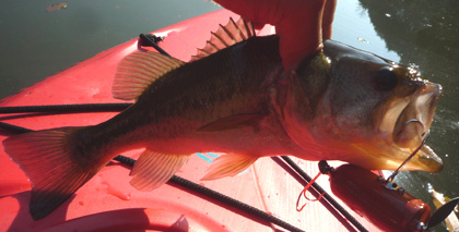 低水温の影響で夏ほど機敏に動けないバスに