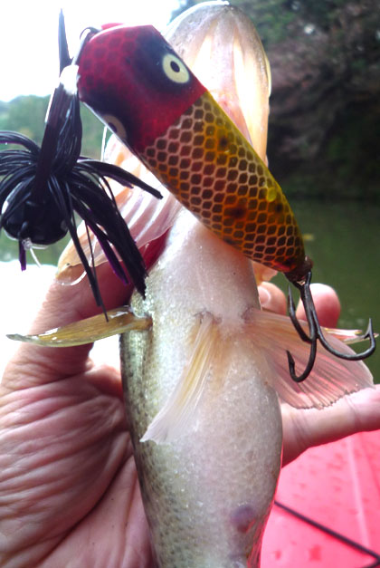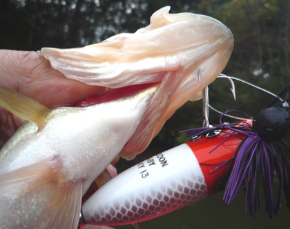 2匹浮いてきて取り合いに。小さいほうにフックアップ。