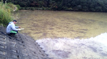 深刻な被害状況。池の濁りはどこともこんな感じヽ(´Д`;≡;´Д`)ノ